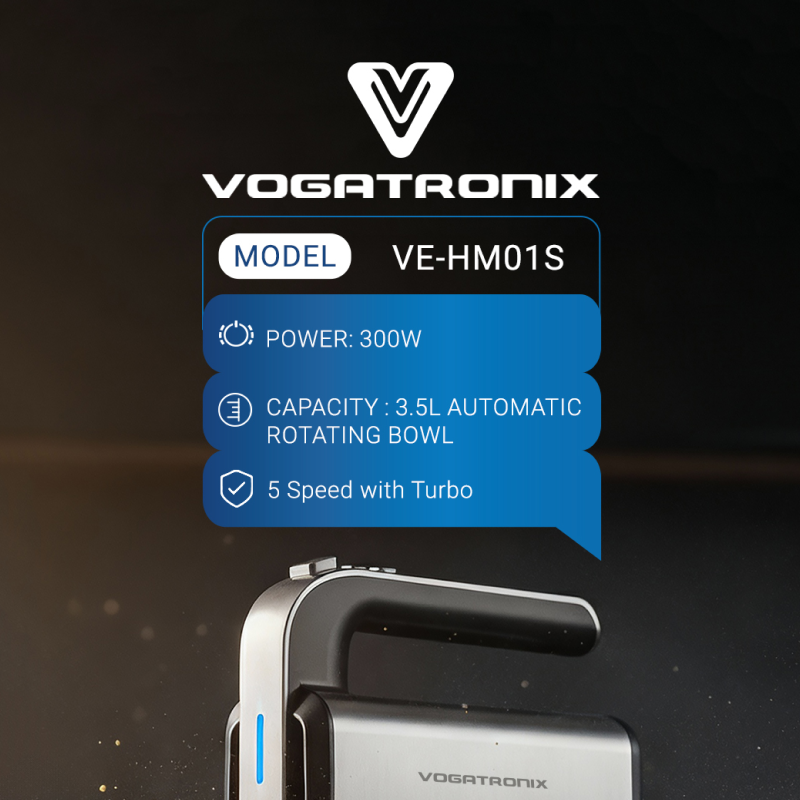 Vogatronix Stand Mixer (VE-HM01S) from Vogatronix is designed to bring reliable performance and a premium feel to your everyday routine. It is designed to help with mixing and baking prep, with multiple speeds for everyday recipes.